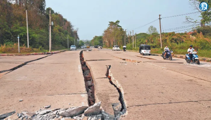 மியான்மரில் ஐராவதி ஆற்றின் மீது ஒரு பழைய பாலம் மற்றும் பல குடியிருப்பு கட்டிடங்களும் இடிந்து விழுந்தன, மாண்டலே நகரம் முழுவதும் நிலநடுக்கத்தின் பேரழிவில் சிக்கி உள்ளது. மாண்டலே ஏர்போர்ட் சேதம் அடைந்தது. இதனால் விமான போக்குவரத்து முடக்கப்பட்டது. தாய்லாந்தின் எல்லையை ஒட்டிய ஷான் மாநிலத்தின் டவுங்கி நகருக்கு அருகில் ஒரு புத்த மடாலயம் இடிந்து விழுந்தது. மாண்டலே மற்றும் யாங்கூன் இடையேயான சாலைகளும் சேதமடைந்துள்ளன.