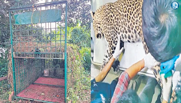 தோட்டத்து கம்பி வேலியில் சிக்கிய சிறுத்தையை மீட்டு சிகிச்சைக்கு பின் விலங்கியல் பூங்காவில் விடுவிப்பு