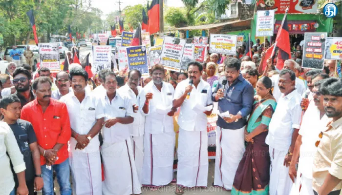 வாலாஜாபாத் வடக்கு ஒன்றிய திமுக சார்பில், காஞ்சிபுரம் அருகே ஏனாத்தூர் பகுதியில் நடந்த ஆர்ப்பாட்டத்துக்கு, ஒன்றிய செயலாளர் படுநெல்லி பி.எம்.பாபு தலைமை தாங்கினார். இதில், வாலாஜாபாத் ஒன்றியக்குழு தலைவர் ஆர்.கே.தேவேந்திரன், மாவட்ட கவுன்சிலர் ராஜலட்சுமி, குஜராத் மற்றும் ஊராட்சி தலைவர்கள், ஊராட்சி மக்கள் கலந்துகொண்டனர்.