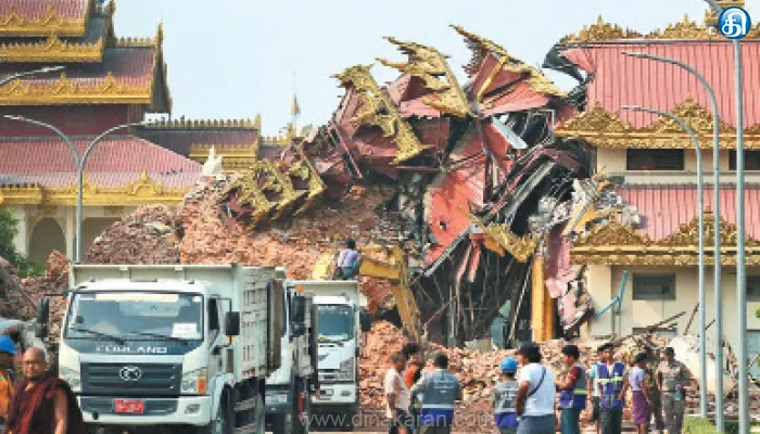 ரிக்டர் அளவில் 7.7 புள்ளிகளாக பதிவான இந்த நிலநடுக்கத்தை தொடர்ந்து, 6.4 ரிக்டர் அளவில் அடுத்தடுத்து நிலநடுக்கங்களும், நில அதிர்வுகளும் ஏற்பட்டன. இந்த நிலநடுக்கம் மியான்மர், தாய்லாந்து நாடுகளில் பெரும் பாதிப்புகளை ஏற்படுத்தி உள்ளது. பல குடியிருப்பு கட்டிடங்கள் சீட்டுக்கட்டு போல சரிந்தன. நிலநடுக்கத்தை தொடர்ந்து மீட்பு பணிகள் நேற்று துரிதப்படுத்தப்பட்டன. இதில், மியான்மரில் 1644 பேர் பலியானதாகவும், 3,400 பேர் காயமடைந்ததாகவும், 139 பேரை காணவில்லை என்றும் ராணுவம் தலைமையிலான அரசு அதிகாரப்பூர்வ தகவல் வெளியிட்டுள்ளது.