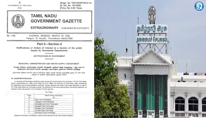 தமிழ்நாட்டில் 7 புதிய நகராட்சிகளை உருவாக்கி தமிழ்நாடு அரசு அரசிதழ் வெளியீடு
