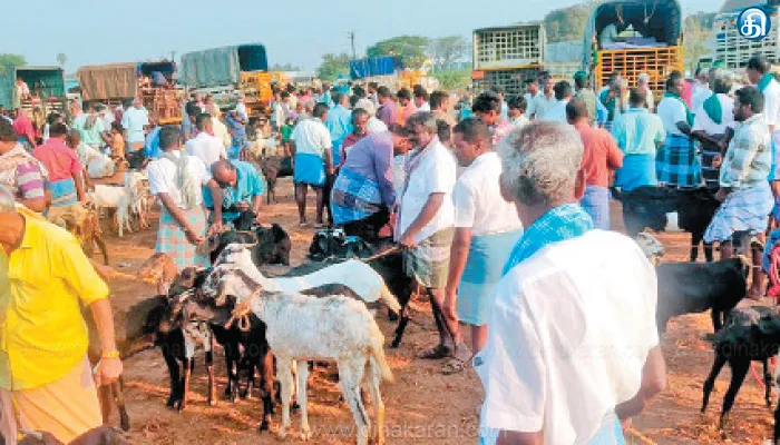 இந்த ஆட்டு சந்தைக்கு திருச்சி, கரூர், அரியலூர், பெரம்பலூர், புதுக்கோட்டை, சேலம், ஆத்தூர், விருதுநகர், கள்ளக்குறிச்சி உள்ளிட்ட பல்வேறு இடங்களில் இருந்து வியாபாரிகள் டெம்போ, லாரி, வேன் உள்ளிட்ட பல்வேறு வாகனங்களில் செம்மறி ஆடு, வெள்ளாடு உள்ளிட்ட ஆடுகளை கொண்டு வந்து விற்பனை செய்வார்கள். இதேபோல் ஆடுகளை வாங்குவதற்காக பல்வறு ஊர்களில் இருந்தும் வியாபாரிகள் ஏராளமானோர் சந்தைக்கு வருவார்கள்.