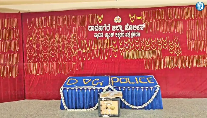 கர்நாடகா மாநிலம் தாவணகெரே மாவட்டம் நியாமதி டவுன் பகுதியில் பாரத ஸ்டேட் வங்கி (SBI) ஒன்று செயல்பட்டு வருகிறது. இந்நிலையில், கடந்த ஆண்டு அக்டோபர் மாதம் 28ஆம் தேதி, வங்கியை உடைத்து ரூ.13 கோடி மதிப்புள்ள தங்க நகைகளை அடையாளம் தெரியாத நபர்கள் கொள்ளையடித்துச் சென்றனர். இந்த சம்பவம் வங்கி வாடிக்கையாளர்கள் மத்தியில் பெரும் அதிர்ச்சியை ஏற்படுத்தியது,