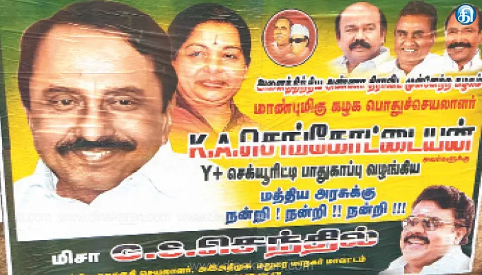இந்த சூழலில், திருமங்கலம், கள்ளிக்குடி உட்பட மதுரை மாவட்டத்தின் முக்கிய பகுதிகளில், மதுரை மாநகர் மாவட்ட மத்திய தொகுதி அதிமுக செயலாளர் மிசா செந்தில் என்பவரின் பெயரில் நேற்று ஒட்டப்பட்ட போஸ்டர்கள் புதிய பரபரப்பை ஏற்படுத்தியுள்ளன. அந்தப் போஸ்டர்களில், ‘‘அதிமுக பொதுச்செயலாளர் கே.ஏ.செங்கோட்டையன் அவர்களுக்கு ஒய் பிளஸ் பாதுகாப்பு வழங்கிய ஒன்றிய அரசுக்கு நன்றி, நன்றி, நன்றி’’ என குறிப்பிடப்பட்டுள்ளது. இதுதவிர அண்ணா, எம்ஜிஆர், ஜெயலலிதா, முன்னாள் அமைச்சர்கள் வேலுமணி, தங்கமணி மற்றும் ராஜன் செல்லப்பா எம்எல்ஏ ஆகியோரது படங்கள் போஸ்டரில் இடம்பெற்றுள்ளன. அதில் எடப்பாடி பழனிசாமியின் படம் இல்லை.