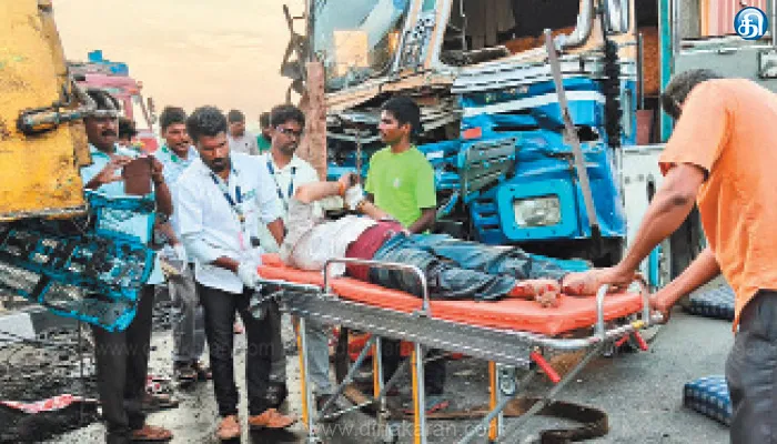 இந்த விபத்தில் லோடு லாரி ஓட்டி வந்த உத்தரபிரதேசத்தை சேர்ந்த சுயபால் (43) என்பவரின் 2 கால்களும் லாரிகளுக்கு இடையில் சிக்கியுள்ளது. இதனால் வலியால் துடித்துள்ளார். இதை பார்த்து அதிர்ச்சியடைந்த அப்பகுதி மக்கள் உடனடியாக கும்மிடிப்பூண்டி போலீசார் மற்றும் தீயணைப்பு நிலையத்துக்கு தகவல் தெரிவித்தனர். இந்த விபத்தால் போக்குவரத்து நெரிசல் ஏற்பட்டது. சம்பவ இடத்துக்கு விரைந்து வந்த தீயணைப்பு வீரர்கள் ஒரு மணி நேரம் போராடியும் டிரைவர் சுயபாலை மீட்க முடியவில்லை. இதையடுத்து கிரேன் வரவழைக்கப்பட்டு டிரைவரை மீட்டனர். ஆனால், லாரி டிரைவரின் இரு கால்களிலும் முறிவு ஏற்பட்டுள்ளது.