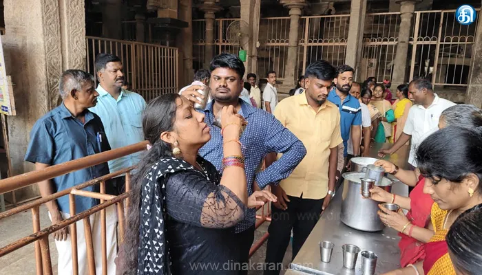 திருச்சி: கோடை வெப்பம் அதிகரித்து வருவதை யொட்டி கோடை வெப்பத்தின் தாக்கத்தில்லிருந்து கோயிலுக்கு வரும் பக்தர்களை காக்கும் பொருட்டு முதல்லமைச்சரின் சீறிய ஆலோசனைப்படியும், இந்துசமய அறநிலையத்துறை அமைச்சர் சேகர்பாபு அறிவுரைப்படியும் இந்துசமய அறநிலையத்துறை செயலர் மற்றும் ஆணையர் அவர்களின் ஆணையின்படியும் இன்று முதல் மூலவர் மூலஸ்தானம் அருகில் பக்தர்களுக்குமருத்துவ குணம் நிறைந்த மூலிகை நீர்மோர் கோடை காலம் முழுவதும் வழங்க கோவில் நிர்வாகம் ஏற்பாடு செய்துள்ளது.