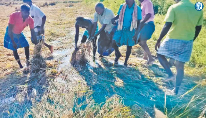 ஏற்கனவே கடந்த ஆண்டை விட நெல்லுக்கு விலை குறைந்த நிலையில், தற்போது விளைய வைத்த நெல்லையும் அறுவடை செய்ய முடியாமல் விவசாயிகள் கண்ணீர் வடிக்கின்றனர். வீட்டிலிருந்த கொஞ்சம் நஞ்சம் நகைகளை அடகு வைத்து விவசாயம் செய்தோம்.