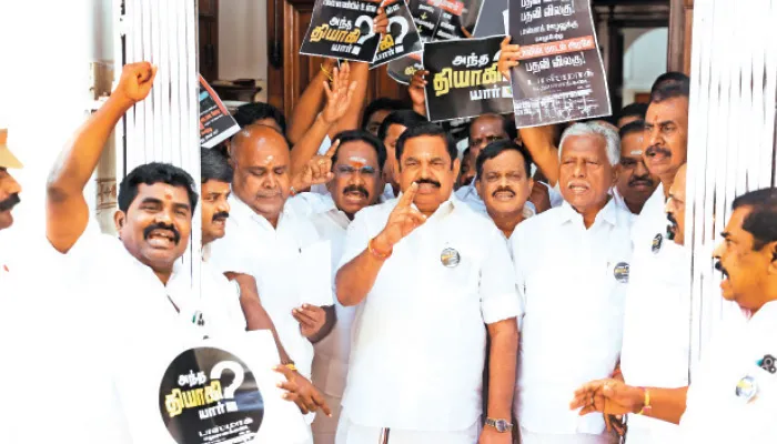 அப்பாவு(சபாநாயகர்): காலையில் எனது அறைக்கு எதிர்க்கட்சி துணை தலைவர் இந்த பிரச்னை குறித்து பேச அனுமதி அளிக்க வேண்டும் என்று கோரினார். நான் அப்போதே பேச அனுமதி அளிக்க முடியாது என்று சொல்லிவிட்டேன். எ.வ.வேலு(அமைச்சர்): 2019ம் ஆண்டு பிப்ரவரி 12ம் தேதி தற்போதைய முதல்வர் எதிர்க்கட்சி தலைவராக இருந்த போது, ஒரு பிரச்னை குறித்து பேச எழுந்தார். அப்போது தற்போதைய எதிர்க்கட்சி தலைவர் அப்போதைய முதல்வர் இந்த பிரச்னை நீதிமன்றத்தில் உள்ளது வழக்குக்கு குந்தகம் ஏற்படும் என்று பேச அனுமதிக்க முடியாது என்று சொல்லியுள்ளீர்கள்.(எடப்பாடி பேசியது அவை குறிப்பில் இருந்து நீக்கம் செய்யப்பட்டது).