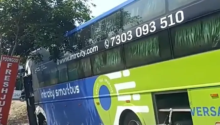 திருமங்கலம்: சென்னையில் இருந்து திருநெல்வேலிக்கு தனியார் ஆம்னி பஸ் நேற்றிரவு புறப்பட்டு சென்றுகொண்டிருந்தது. இன்று காலை 5.45 மணியளவில் மதுரை – திருநெல்வேலி நெடுஞ்சாலையில், மதுரை மாவட்டம் கள்ளிக்குடி அருகே நல்லமநாயக்கன்பட்டி விலக்கு பகுதியில் சென்றுகொண்டிருந்தது. அப்போது பஸ்சின் முன்பகுதியில் இருந்து திடீரென வெண்புகையுடன் தீப்பற்றியது. இதனைப் பார்த்த பஸ் டிரைவர் உடனடியாக சுதாரித்துக்கொண்டு பஸ்சை சாலையோரம் நிறுத்தினார். பஸ்சில் இருந்த சுமார் 40 பயணிகளும் உடனடியாக பாதுகாப்பாக கீழே இறக்கிவிடப்பட்டனர்.