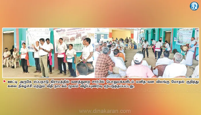 The post ஊட்டி அருகே வனத்துறை சார்பில் மனித-வன விலங்கு மோதல் குறித்து வீதி நாடகம் மூலம் விழிப்புணர்வு appeared first on Dinakaran.