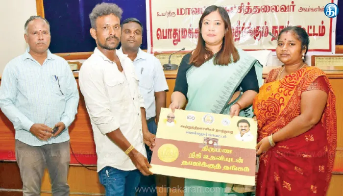 பெரம்பலூர் : பெரம்பலூரில் நடைபெற்ற பொதுமக்கள் குறை தீர்க்கும்நாள் கூட்டத்தில் 12 மாற்றுத்திறனாளிகளுக்கு ரூ.8.06 லட்சம் மதிப்பில் தலா 8 கிராம் தாலிக்குத் தங்கத்துடன் ரூ.4.50 லட்சம் திருமண நிதியுதவிகளை மாவட்ட கலெக்டர் கிரேஸ் பச்சாவ் வழங்கினார்.