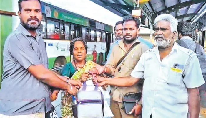 இதனிடையே, பெண் பயணி அழுது புலம்பியபடியே செல்வதை பார்த்த போக்குவரத்து துறை அலுவலர்கள், அவரிடம் விசாரித்த னர். அப்போது அவர், தனது கைப்பை தொலைந்துவிட்டதாக கூறியுள்ளார். பெண் பயணி தவறவிட்ட கைப்பை அவருக்கு சொந்த மானதா? என உறுதி செய்த பின்னர், அதிகாரிகள் கைபையை பெண்ணிடம் ஒப்படைத்தனர். இந்த சம்பவம் சமூக வலைத்தளங்களில் வைரலாக வருகிறது. கைப்பையை கண்டெடுத்து ஒப்படைத்த டிரைவர் மற்றும் கண்டக்டருக்கு சமூக வலைதளங்களில் பாராட்டுகள் குவிந்து வருகிறது. இந்த சம்பவம் கிளாம்பாக்கம் பேருந்து நிலையத்தில் பரபரப்பை ஏற்படுத்தியது.