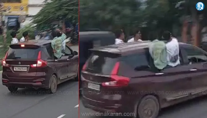 பாலக்காடு அருகே விதிமீறி கார் கதவில் அமர்ந்து ஆபத்தான பயணம்: 4 வாலிபர்கள் கைது