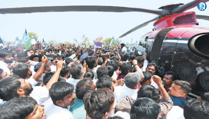 The post மக்கள் கூட்டமாக சூழ்ந்ததால் பரபரப்பு ஜெகன்மோகன் ரெட்டி பயணித்த ஹெலிகாப்டரின் கண்ணாடி சேதம்: கூட்டத்தை கலைக்க போலீஸ் தடியடி appeared first on Dinakaran.