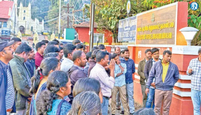 ஊட்டி : பல்வேறு கோரிக்கைகளை வலியுறுத்தி வருவாய்த்துறை அலுவலர் சங்கம் சார்பில் ஊட்டியில் கோரிக்கை முழக்க ஆர்ப்பாட்டம் நடந்தது. வருவாய் மற்றும் பேரிடர் மேலாண்மைத்துறை அலுவலர்களின் பணித்தன்மையினை கருத்தில் கொண்டு அனைவருக்கும் மேம்படுத்தப்பட்ட ஊதியம் வழங்கிட வேண்டும்.