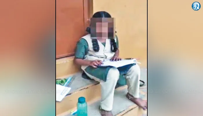 இதையடுத்து கடந்த 7ம் தேதி மாணவி தேர்வு எழுத பள்ளிக்கு சென்றுள்ளார். அப்போது வகுப்பறைக்கு வெளியே உள்ள படிக்கட்டில் அமர்ந்து தேர்வு எழுத சொல்லி உள்ளனர். கடந்த 9ம் தேதி அடுத்த தேர்வு எழுத சென்றுள்ளார். அப்போதும் வெளியில் உள்ள படிக்கட்டில் அமர்ந்து தேர்வு எழுதுமாறு கூறியுள்ளனர்.தகவல் அறிந்த மாணவியின் தாயார் பள்ளிக்கு சென்று மகள் படிக்கட்டில் அமர்ந்து தேர்வு எழுதுவதை பார்த்து, பள்ளி முதல்வர் ஆனந்தியிடம் கேள்வி எழுப்பி உள்ளார். அவர் சரியான பதிலளிக்காமல் மிரட்டல் தொனியில் பேசியதாக கூறப்படுகின்றது. இதையடுத்து மாணவியின் தாயார் தனது செல்போனில் படிக்கட்டில் அமர்ந்து மகள் தேர்வு எழுதுவதை வீடியோவாக எடுத்துள்ளார். இது சமூக வலைத்தளத்தில் வெளியானது.
