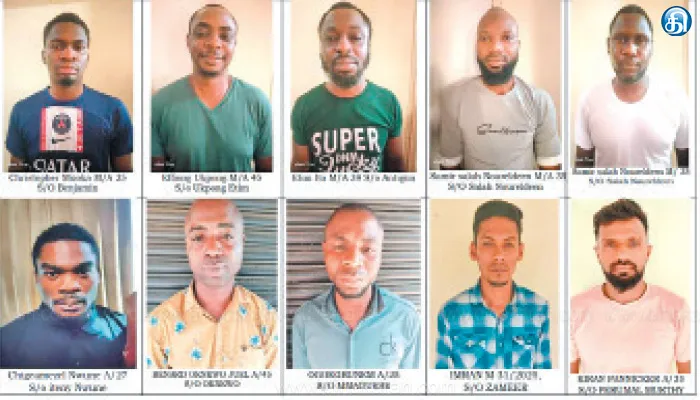 சென்னை: சென்னை பெருநகரில் கஞ்சா உள்ளிட்ட போதைப்பொருள் விற்பனை மற்றும் கடத்தலுக்கு எதிராக கடுமையான நடவடிக்கையை போலீஸ் கமிஷனர் அருண் தனிக்கவனம் செலுத்தி எடுத்து வருகிறார். அந்த வகையில், சென்னை அண்ணா சாலை மற்றும் பீட்டர்ஸ் சாலை சந்திப்பில் கடந்த மாதம் 9ம் தேதி போதைப்பொருள் விற்பனை செய்ததாக முகமது கொகைல் (24), விக்னேஷ்வரன் (24), யுவராஜ் (25), பிரவீன் (31), பாலசந்தர் (28) ஆகியோர் கைது செய்யப்பட்டனர். அவர்கள் அளித்த தகவலின்படி, கடந்த மாதம் 21ம் தேதி நைஜீரியாவை சேர்ந்த 5 பேர் கைது செய்யப்பட்டனர்.
