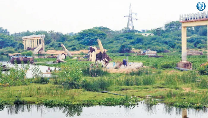 குழாய்களுக்கான கட்டுமானங்களும் ஆற்றுக்குள் உடைந்து அப்படியே தொங்குகின்றன. எனவே ஆற்றுக்குள் கிடக்கும் கட்டிட கழிவுகளை அகற்றி, குடிநீர் குழாய்களை சீரமைக்க நடவடிக்கை எடுக்கப்பட வேண்டும் என அப்பகுதி மக்கள் கோரிக்கை வைத்து வருகின்றனர்.
