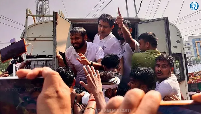 பீகார் இளைஞர்களுக்கு தங்கள் சொந்த மாநிலத்தில் வேலைவாய்ப்பு கிடைக்கவேண்டும் எனக்கோரி பாதயாத்திரை மேற்கொள்ளப்பட்டது. பாதயாத்திரையின் நிறைவு நாளான நேற்று இந்த பிரச்னையை வலியுறுத்தி காங்கிரஸ் தொண்டர்கள் முதல்வர் நிதிஷ்குமாரின் இல்லத்தை முற்றுகையிட சென்றனர். ஆனி மார்க் பகுதியில் உள்ள முதல்வர் நிதிஷ்குமாரின் வீட்டை நோக்கி அவர்கள் செல்ல முயன்றனர். அப்போது போலீசாருக்கும் காங்கிரஸ் தொண்டர்களுக்கும் தள்ளுமுள்ளு ஏற்பட்டது. இதையடுத்து காங்கிரஸ் தொண்டர்களை நோக்கி தடியடி நடத்தி, தண்ணீரை பீய்ச்சி அடித்து கலைத்தனர். இந்த சம்பவத்தில் கன்னையா குமார் உள்ளிட்ட பலர் கைது செய்யப்பட்டனர். இதனால் பரபரப்பு ஏற்பட்டது.