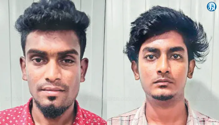 இதுகுறித்து செம்மஞ்சேரி காவல் நிலையத்தில் புகார் அளித்தார். அதன்பேரில், போலீசார் சம்பவ இடத்துக்கு விரைந்து வந்து, அங்குள்ள சிசிடிவி கேமரா பதிவுகளை ஆய்வு செய்து விசாரித்தனர். பின்னர், செம்மஞ்சேரி குற்றப்பிரிவு (பொறுப்பு) ஆய்வாளர் ராஜ்குமார் தலைமையில் போலீசார் வழக்குப்பதிவு செய்து, உதவி ஆய்வாளர்கள் சுரேஷ், ராஜு, தலைமை காவலர்கள் யாசர் அராபத், மணிகண்டன், அஜய் ஆகியோர் அடங்கிய தனிப்படையினர், சிசிடிவி கேமராவில் பதிவான பைக் பதிவெண்ணை வைத்து, அந்த 2 மர்ம நபர்கள் சென்ற வழித்தடத்தை பின்தொடர்ந்து, ஜமீன் பல்லாவரத்தில் வைத்து, அந்த 2 மர்ம நபர்களையும் மடக்கி பிடித்தனர்.