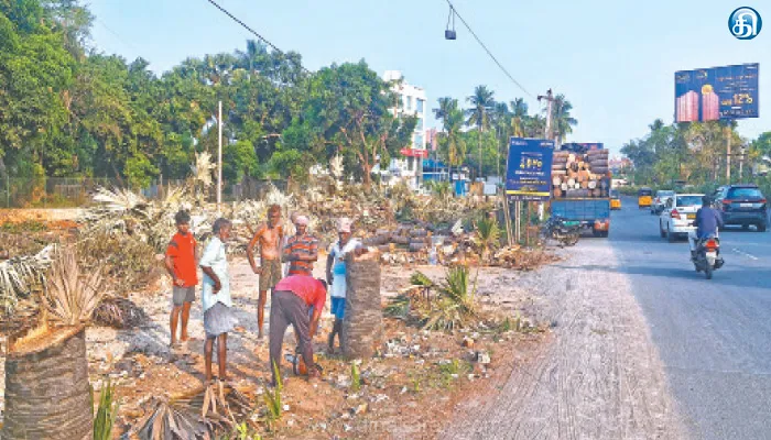 இந்நிலையில், சிறுசேரி ஐடி பூங்காவில் இருந்து படூர் புறவழி சாலை வரையிலான நான்கு வழி சாலையை 6 வழி சாலையாக மாற்ற தமிழ்நாடு சாலை மேம்பாட்டு நிறுவனம் முடிவு செய்து, அதற்கான இழப்பீடு தொகையை வழங்கி, தனியாரிடமிருந்து நிலங்களை கையகப்படுத்தியது. நீண்ட இழுபறிக்கு பின் நிலங்களும் கையகப்படுத்தப்பட்டு, விரிவாக்க பணிகள் துவங்கப்படுகின்றன. இதற்காக சாலையோர பனைமரங்கள் நேற்று முழுமையாக அகற்றப்பட்டன. இதனால் பசுமையாக காட்சியளித்த பகுதி வெறிச்சோடி காணப்படுகிறது. அங்கு விரைவில் சிறு கட்டிடங்களும் அகற்றப்பட்டு சாலை விரிவாக்க பணிகள் துவங்கி 3 மாதங்களில் நிறைவு பெறும் என்று சாலை மேம்பாட்டு நிறுவன அதிகாரிகள் தெரிவித்தனர்.