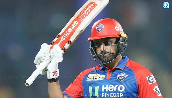 மும்பை அணிக்கு எதிரான, ஐபிஎல் 29வது லீக் போட்டியில் டெல்லி கேபிடல்ஸ் அணிக்காக ஆடிய கருண் நாயர், 40 பந்துகளை எதிர்கொண்டு 89 ரன்களை குவித்தார். 3 ஆண்டுகளுக்கு பின்னர், தற்போது முதல் முறையாக ஐபிஎல்லில் ஆடியுள்ள கருண் நாயர், முதல் போட்டியிலேயே அரை சதம் விளாசி சாதனை படைத்துள்ளார். இதற்கு முன், 2018ம் ஆண்டு, பஞ்சாப் அணிக்காக ஆடியபோது, கருண் நாயர் கடைசியாக அரை சதம் விளாசினார். அதற்கு பின், 7 ஆண்டு இடைவெளிக்கு பின் தற்போதுதான் அரை சதம் அடித்துள்ளார். ஐபிஎல் வரலாற்றில், 2520 நாட்கள் இடைவௌியில் ஒரு வீரர் அரை சதம் விளாசுவது இதுவே முதல் முறை.