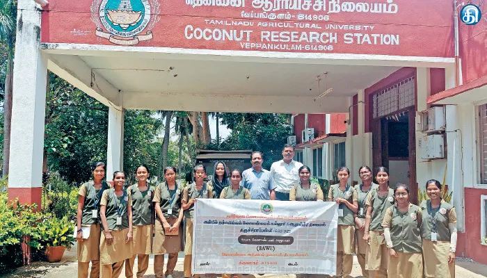 தென்னை ஆராய்ச்சி நிலையத்தில் வேளாண் கல்லூரி மாணவிகளுக்கு பயிற்சி