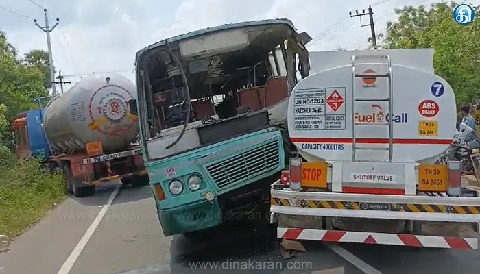 The post சிவகங்கை அருகே டேங்கர் லாரிகள், பேருந்து மோதல்..!! appeared first on Dinakaran.
