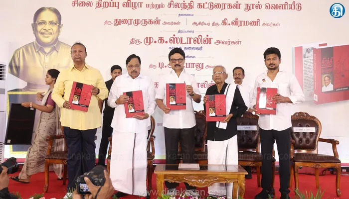 சிலந்தி கட்டுரைகள் புத்தகத்தை அமைச்சர் துரைமுருகன் வெளியிட, முதல் பிரதியை தி.க. தலைவர் வீரமணி பெற்றுக்கொண்டார். தொடர்ந்து, நிகழ்ச்சியில் பங்கேற்ற விருந்தினர்களுக்கு முதல்வர் மு.க.ஸ்டாலின் புத்தகத்தை வழங்கினார். இந்த நூலை அமைச்சர்கள் கே.என்.நேரு, ஐ.பெரியசாமி, பொன்முடி, எ.வ.வேலு, மு.பெ.சாமிநாதன், செந்தில் பாலாஜி, பொன்முடி, கோவி.செழியன் உள்ளிட்டோருக்கும், நாடாளுமன்ற உறுப்பினர்கள் கனிமொழி, ராசா, தயாநிதி மாறன், சட்டமன்ற உறுப்பினர்கள் மு.க.தமிழரசு, கவிஞர் வைரமுத்து, இயக்குநர் அமிர்தம், நடிகர்கள் சத்யராஜ், ராஜேஷ், கருணாஸ், தமிழ்நாடு காங்கிரஸ் தலைவர் செல்வப்பெருந்தகை, திமுக அமைப்புச் செயலாளர் ஆர்.எஸ்.பாரதி, இந்திய யூனியன் முஸ்லிம் லீக் தலைவர் காதர் மொகிதீன், தமிழ்நாடு காங்கிரஸ் செய்தி தொடர்பாளர் கோபண்ணா, தமிழ்நாடு பாடநூல் கழக தலைவர் திண்டுக்கல் ஐ.லியோனி,