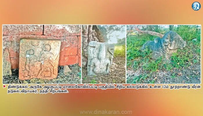 திண்டுக்கல் அருகே அழகுபட்டி மாலைகோவில்பட்டி பகுதியில் வரலாற்று குழு ஆய்வாளர் விஸ்வநாததாஸ், வரலாற்று மாணவர் ரத்தினமுரளிதர், வரலாற்று ஆர்வலர்கள் சந்திரசேகர், உமா மகேஸ்வரன், பெருமாள் சாமி அடங்கிய குழுவினர் ஆய்வு மேற்கொண்டனர். அப்போது 12ம் நூற்றாண்டை சேர்ந்த வீரன் நடுகல் கண்டுபிடித்தனர்.இதுகுறித்து அவர்கள் கூறியதாவது: