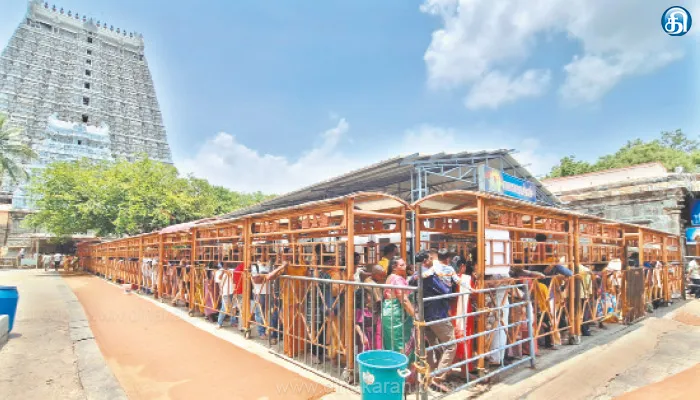 அதையொட்டி, அதிகாலை ஐந்து மணிக்கு நடை திறக்கும்போது தரிசன வரிசையில் பக்தர்களுக்கு கூட்டம் காணப்பட்டது. படிப்படியாக காலை 11 மணியளவில் கூட்டம் அதிகரிக்க தொடங்கியது. ராஜகோபுரம் மற்றும் அம்மணி அம்மன் கோபுரம் வழியாக பக்தர்கள் தரிசனத்திற்கு அனுமதிக்கப்பட்டனர். சுட்டெரிக்கும் வெயிலையும் பொறுப்படுத்தாமல் தரிசனத்திற்காக வரிசையில் காத்திருக்கும் பக்தர்களுக்கு கோயில் நிர்வாகம் சார்பில் நீர்மோர் வழங்கப்பட்டது.