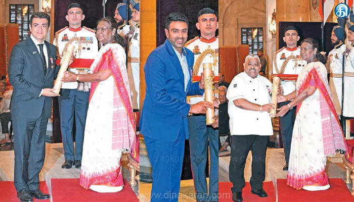 இதே போல தமிழ்நாட்டைச் சேர்ந்த கிரிக்கெட் வீரர் ரவிச்சந்திர அஷ்வின், சிற்பக் கலைஞர் ராதாகிருஷ்ணன் தேவசேனாபதி, உச்ச நீதிமன்ற மூத்த வழக்கறிஞர் சி.எஸ்.வைத்தியநாதன், தொழிலதிபர் ஆர்.ஜி.சந்திரமோகன், பிரபல சமையல்கலைநிபுணர் தாமு, பத்திரிகையாளர் லட்சுமிபதி உள்ளிட்டோருக்கு பத்ம  விருது வழங்கப்பட்டது.