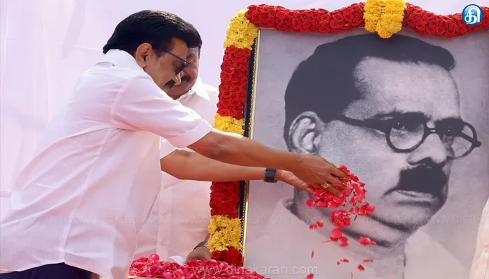 சென்னை: பாவேந்தர் பாரதிதாசன் 135-வது பிறந்தநாளையொட்டி, சென்னையில் நடைபெற்ற நிகழ்ச்சியில் முதலமைச்சர் மு.க.ஸ்டாலின் பாரதிதாசன் திருவுருவப் படத்திற்கு மலர் தூவி மரியாதை செலுத்தினார். அப்போது அமைச்சர்கள், சென்னை மேயர் ப்ரியா உள்ளிட்டோர் உடனிருந்தனர். பாவேந்தர் பாரதிதாசன் பிறந்தநாளையொட்டி, தமிழ்நாடு அரசு சார்பில் தமிழ் வார விழா இன்று முதல் மே 5 வரை கொண்டாடப்படுகிறது.