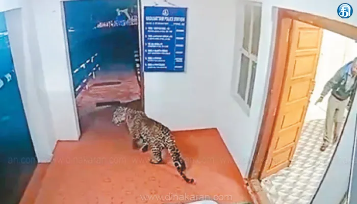 சிறிது நேரம் கழித்து சிறுத்தை அங்கிருந்து வெளியேறி சென்றுள்ளது. மக்கள் நடமாட்டம் உள்ள நேரத்தில் சிறுத்தை காவல் நிலையத்தில் புகுந்த சம்பவம் பரபரப்பை ஏற்படுத்தி உள்ளது. சிறுத்தை காவல் நிலையத்திற்குள் வந்த சிசிடிவி கேமரா காட்சிகள் தற்போது வைரலாகி வருகிறது. அருகில் உள்ள குடியிருப்பு பகுதிகளில் நாய்களை வேட்டையாட வந்த சிறுத்தை கதவுகள் திறந்து கிடந்த காவல் நிலையத்திற்குள் புகுந்து இருக்கலாம் என வனத்துறையினர் தெரிவித்தனர்.
