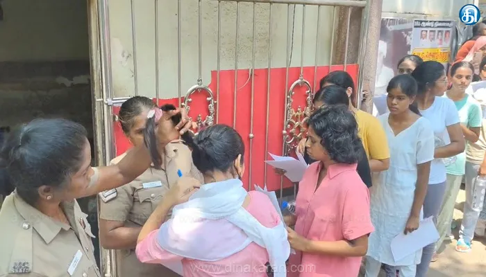 இதையடுத்து, இன்று காலை 10 மணி முதலே மாணவ மாணவியர் தேர்வு வளாங்களுக்கு வரத் தொடங்கினர். அவர்களை கடுமையான சோதனைக்கு பிறகு வளாகத்துக்குள் அதிகாரிகள் அனுமதித்தனர்.