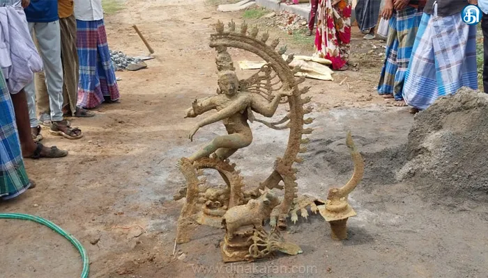 கடலூர்: கடலூர் மாவட்டம் காட்டுமன்னார்கோவில் அடுத்து உள்ள கொல்லிமலை கீழ் பாதி என்ற கிராமத்தில் முகம்மது அப்சர் (35) என்பவர் புதிய வீடு கட்டுவதற்கு அஸ்திவாரம் போடும் போது சுமார் 3 அடி உயரமுள்ள நடராஜர் சிலை, சிதலமான திருவாச்சி,அஸ்தி தேவர்,1 அடி பிரதோஷ நந்தி வாகனம் உள்ளிட்ட உலோகங்களால் ஆன சிலைகள் கண்டெடுக்கப்பட்ட பட்டது. இவைகளை, வருவாய் மற்றும் காவல்துறையினர் சிலைகளை கைப்பற்றி விசாரணை மேற்கொண்டு வருகின்றனர்.