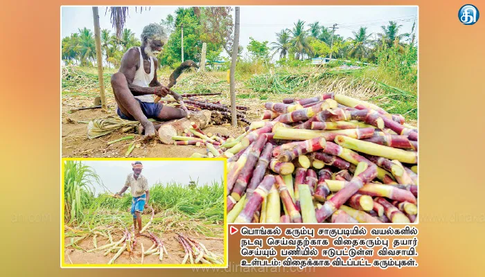 அதன் பின்னர் விதை கரும்புகளை நடவு செய்ய வேண்டும். தற்போது தஞ்சை அருகே சூரக்கோட்டை, காட்டூர், வரவுக்கோட்டை உள்ளிட்ட பகுதிகளில் விதைக் கரும்புகள் நடும் பணியில் விவசாயிகள் மும்முரமாக ஈடுபட்டுள்ளனர். பொங்கல் கரும்பு நடவு பணிகள் தொடங்கியுள்ளதால் தஞ்சாவூர் மாவட்டத்தில் விதைக்கரும்பு விற்பனையும் களைகட்டியுள்ளது. ஒரு விதைக்கரும்பு 2 ரூபாய் 50 காசுக்கு விற்பனை செய்யப்படுகிறது.