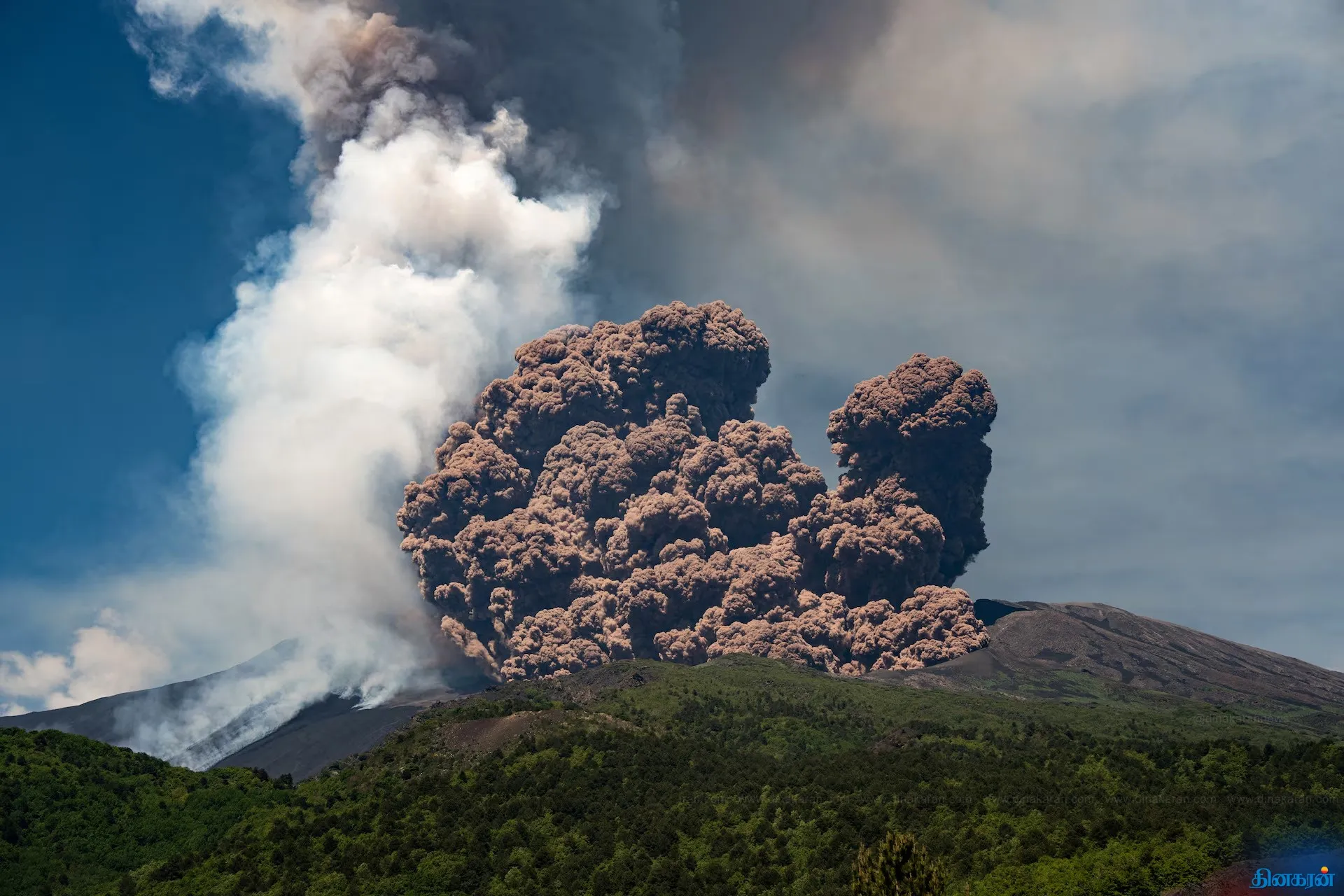 இத்தாலியின் சீறும் எட்னா எரிமலை வெடிக்க தொடங்கியது.. வானம் புகை மண்டலமாக மாறியது!!