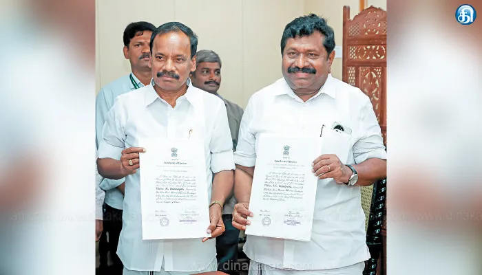அதனை ெதாடர்ந்து திமுக வேட்பாளர்களான வில்சன், ராஜாத்தி, சிவலிங்கம், மக்கள் நீதி மய்யம் தலைவர் கமல்ஹாசன் ஆகியோர் துணை முதல்வர் உதயநிதி ஸ்டாலின் முன்னிலையில் சான்றிதழ்களை பெற்றுக் கொண்டனர். அப்போது துணை சபாநாயகர் பிச்சாண்டி, அமைச்சர் மா.சுப்பிரமணியன் உடனிருந்தனர். இதைதொடர்ந்து அதிமுக வேட்பாளர்களான இன்பதுரை, தனபால் ஆகியோர் முன்னாள் அதிமுக அமைச்சர்கள் ஜெயக்குமார், வளர்மதி ஆகியோர் முன்னிலையில் சான்றிதழ்களை பெற்றுக்கொண்டனர்.