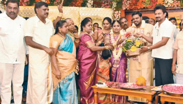 அவரது வாரிசுகள் அனைவரையும் கழக குடும்பங்களையே பார்த்து பார்த்து திருமணம் செய்து வைக்கிறார். இதன் மூலம் கழகமும் வலுப்பெறுகிறது, கழகத்தைச் சேர்ந்தவர்களின் குடும்பங்களும் வலுப்பெறுகிறது. வரும் வழியில் மக்களை சந்தித்தபடி வந்தேன். அவர்களின் முகத்தில் மகிழ்ச்சி தெரிகிறது. அடுத்த முறையும் திமுக தான் ஆட்சிக்கு வரப்போகிறது என்பது அவர்களின் முகத்தையும், எழுச்சியையும் பார்க்கும்போதே தெரிகிறது. ஆகவே, அந்த வகையில் இன்னும் 8 மாதங்கள் நாம் உழைத்தால் மக்களிடம் நமது திட்டங்களை எடுத்துச் சொன்னால் போதும் நாம் வெற்றி பெறுவது உறுதி. மணமக்கள் தங்களுக்கு பிறக்கப்போகும் குழந்தைகளுக்கு தமிழில் பெயர் சூட்ட வேண்டும். மணமக்கள் நல்ல நண்பர்களாக விட்டுக் கொடுத்து வாழ வேண்டும்’’ என்றார்.