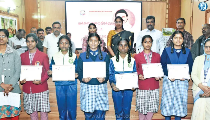 மேலும் தமிழ் வளர்ச்சித்துறை சார்பில் மாவட்ட அளவில் நடைபெற்ற 2025-26ம் ஆண்டிற்கான பள்ளி மாணவர்களுக்கான பேச்சு போட்டி மற்றும் கட்டுரை போட்டியில் வெற்றிபெற்ற சிஎஸ்ஐ., சிஎம்எம்., மேல்நிலை பள்ளி மாணவிகளுக்கு பாராட்டு சான்றிதழ்களையும் வழங்கினார்.