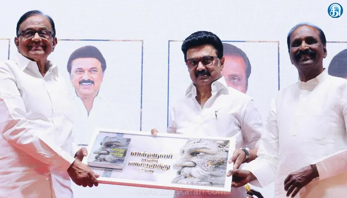 விழாவில் முதல்வர் மு.க.ஸ்டாலின் பேசியதாவது: திருக்குறள் இரண்டு அடிதான்; ஆனால், இரண்டாயிரம் ஆண்டுகளுக்கு மேலாக, அதற்கு புதுப்புது பொருள்கள் சொல்லி, உலக மக்கள் எல்லோருக்கும் புதுவழியை நல்வழியை சொல்ல கூடிய உலக இலக்கியமாக உயர்ந்து நிற்கிறது. அதனால்தான், மணக்குடவர் பரிமேலழகர் தொடங்கி கலைஞர் உள்ளிட்ட ஏராளமானோர் திருக்குறளுக்கு உரை எழுதியிருக்கிறார்கள். அந்த வரிசையில்தான், கவிப்பேரரசு வைரமுத்துவும் இணைந்திருக்கிறார்.