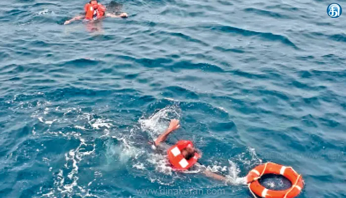 நாங்கள் கடலில் நீந்தி கொண்டிருந்த போது ஒரு படகில் துப்பாக்கி ஏந்திய நிலையில் 5 பேர் அருகே வந்து பார்த்துவிட்டு திரும்ப சென்றனர். அவர்கள் யார் என்று தெரியவில்லை. கடலில் இறங்கிய போது என்னுடன் கேரள மாநிலம் காயங்குளத்தை சேர்ந்த அனில் என்பவரும் இருந்தார். அலை தாக்கம் காரணமாக தனி தனி குழுவாக பிரிந்தோம். சுமார் 26 மணி நேரம் தண்ணீரில் நீந்தி கொண்டே இருந்தோம். 9ம் தேதி காஸ்மோ கம்பெனியின் ரெக்கவரி படகு வந்து 10 பேரை மீட்டது. 12ம் தேதி மாலை வரை தேடியும் மீதி 11 பேரை மீட்க முடியவில்லை.
