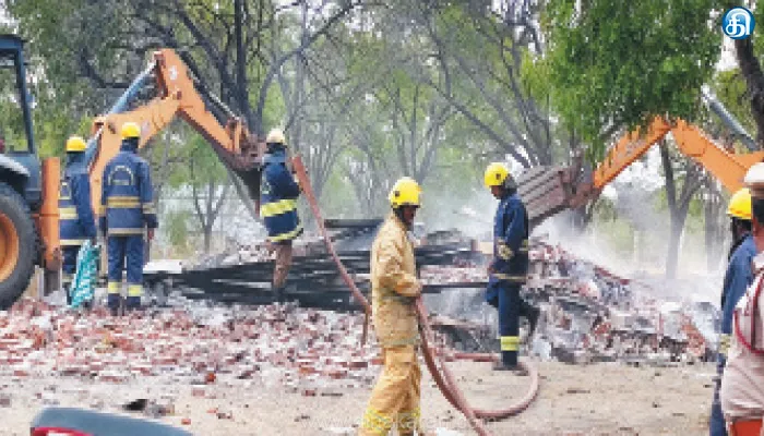 சிவகாசி: விருதுநகர் மாவட்டம், சிவகாசி அருகே நாரணாபுரம் – அனுப்பன்குளம் சாலையில் சீனிவாசா என்பவருக்கு சொந்தமான பட்டாசு ஆலை உள்ளது. இங்கு 50 அறைகள் உள்ளன. தீபாவளி பண்டிகைக்கு தேவையான பேன்சி ரக பட்டாசுகள் செய்யும் பணியில் நேற்று 60க்கும் மேற்பட்ட தொழிலாளர்கள் ஈடுபட்டிருந்தனர். அப்போது ஒரு அறையில் மருந்து உராய்வு ஏற்பட்டு பயங்கரமாக வெடித்து சிதறியது. தீ அடுத்தடுத்த அறைகளுக்கும் பரவி 4 அறைகள் தரைமட்டமாகின. தகவல் அறிந்து சிவகாசி தீயணைப்பு வீரர்கள் வந்து தீயை அணைக்கும் பணியில் ஈடுபட்டனர்.