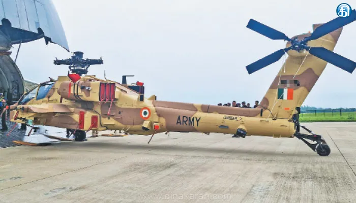 புதுடெல்லி: அமெரிக்க விமான தயாரிப்பு நிறுவனமான போயிங்கின் ஏஎச்-64 அப்பாச்சி ஹெலிகாப்டர், உலகின் மிகவும் மேம்பட்ட பல்துறை ஹெலிகாப்டர்களில் ஒன்றாகும். இந்திய ராணுவத்துக்கு ஆறு ஏஎச்-64 அப்பாச்சி ஹெலிகாப்டர்களை வாங்க கடந்த 2020ம் ஆண்டு ஒப்பந்தம் செய்யப்பட்டது.