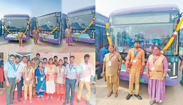 சென்னை மாநகரப் போக்குவரத்துக் கழகம் சார்பாக, தமிழ்நாட்டில் முதல் முறையாக சென்னையில் 120 மின்சார தாழ்தள பேருந்துகள் கடந்த மாத இறுதியில் அறிமுகப்படுத்தப்பட்டுள்ளன. சென்னை வியாசர்பாடி பணிமனையிலிருந்து இயக்கப்படும் இந்த பேருந்துகளை முதலமைச்சர் மு.க.ஸ்டாலின் அவர்கள் கொடியசைத்து துவங்கி வைத்தார். மின்சார பேருந்துகளை இயக்குவதற்காக 17 நடத்துநர்கள், 3 ஓட்டுனர்கள் என 20 பெண் பணியாளர்கள் பணியில் அமர்த்தப்பட்டுள்ளனர். துவக்க விழாவின்போது அலங்கரிக்கப்பட்ட பேருந்துகளில் ஓட்டுநர்களுக்கான சீருடை அணிந்து மிடுக்காக பேருந்தை இயக்கிய பெண் ஓட்டுநர்களை சந்தித்தோம். ‘நான் முதல்வன் திட்டத்தின்’ மூலம் பயன்பெற்று சென்னையில் MTC பேருந்துகளை இயக்க தயாராகியிருக்கும் மகேஸ்வரி, மாணிக்கவல்லி, அந்தோணி பவுன் ஆகியோருடன் உரையாடியதில்…