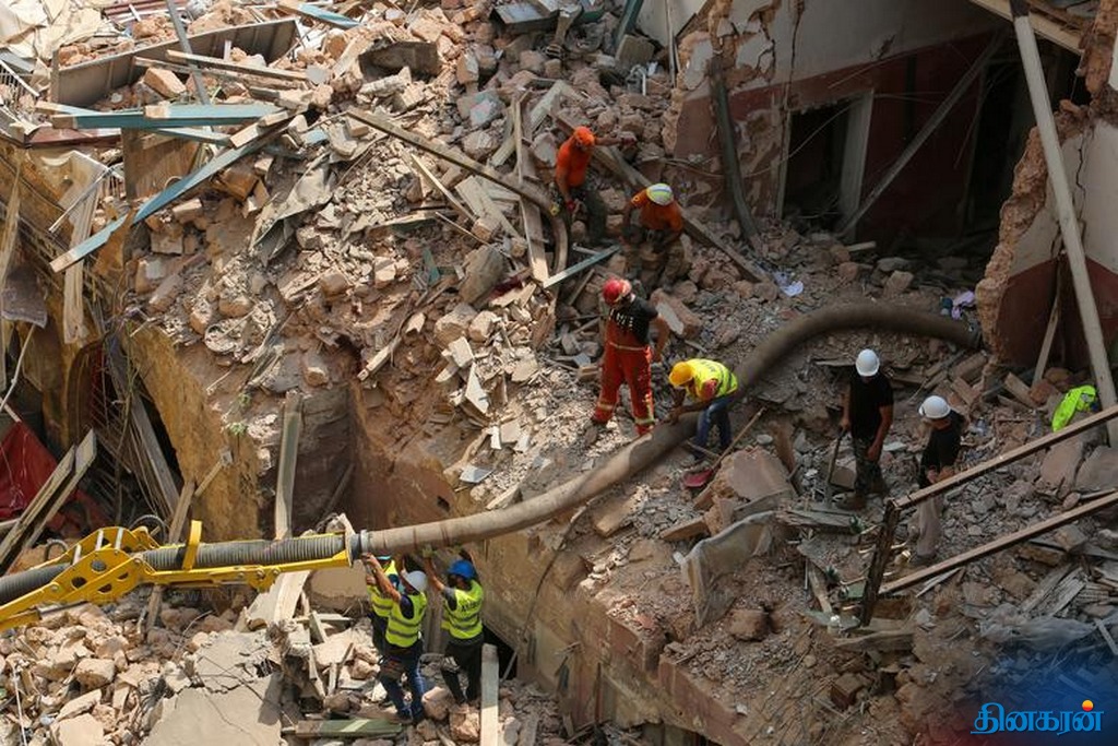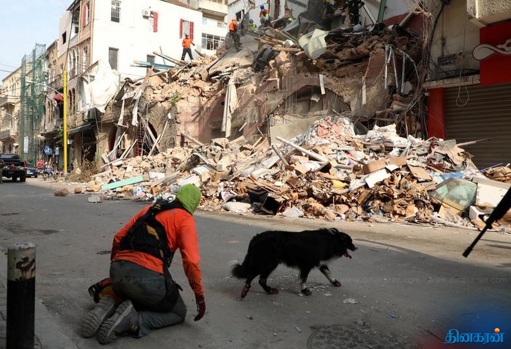 லெபனான் வெடிவிபத்து: 1 மாதத்திற்கு பின் மோப்பநாய் நோட்டமிட்டதால் மீண்டும் மீட்பு பணியில் ஈடுபட்ட மீட்பு குழுவினர்!