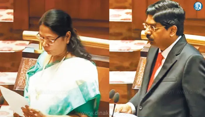 இந்த நிலையில்தேர்தல் ஆணையத்தின் அறிவிப்பின் அடிப்படையில் திமுகவை சேர்ந்த மூன்று எம்பிக்கள் அதாவது பி.வில்சன், கவிஞர் ராஜாத்தி என்கிற சல்மா, எஸ்.ஆர்.சிவலிங்கம் ஆகியோர் மாநிலங்களவையில் எம்பிக்களாக நேற்று காலை பதவியேற்று கொண்டனர். இதில் பி.வில்சன் மட்டும் இரண்டாவது முறையாக மாநிலங்களவை எம்பியாக பதவியேற்று கொண்டார். இவர்களுக்கு மாநிலங்களைவை துணைத் தலைவர் ஹரிவன்ஷ் நாராயண் சிங் பதவிப் பிரமாணம் செய்து வைத்தார்.