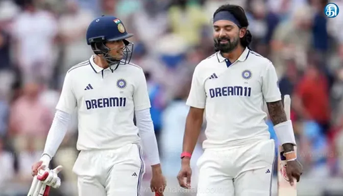 பின்னர், 2வது இன்னிங்சை துவக்கிய இந்திய அணியின் துவக்க வீரர் யஷஸ்வி ஜெய்ஸ்வாலும் பின் வந்த சாய் சுதர்சனும் ரன் எடுக்காமல் விக்கெட்டை பறிகொடுத்தனர். அதையடுத்து, மற்றொரு துவக்க வீரர் கே.எல்.ராகுலுடன் இணை சேர்ந்து கேப்டன் சுப்மன் கில் ஆடத் துவங்கினார். அவர்கள் இருவரும் நிதானமாகவும், பொறுப்பாகவும் ஆடி ரன்களை சேர்த்தனர். 63ஓவர் முடிவில் இந்தியா 2 விக்கெட் இழப்புக்கு 174 ரன்கள் எடுத்திருந்தது.ராகுல் 87 ரன்னுடனும்,சுப்மன் கில் 78 ரன்னுடனும் களத்தில் இருந்தனர்.