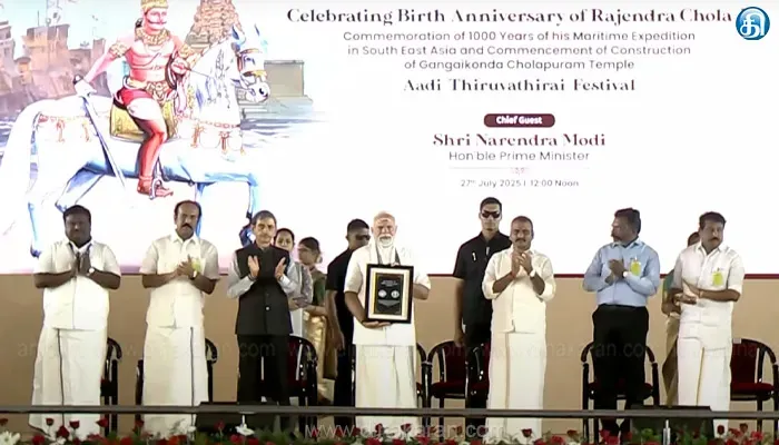 The post கங்கைகொண்ட சோழபுரத்தில் மாமன்னன் ராஜேந்திர சோழன் உருவம் பொறித்த நாணயத்தை வெளியிட்டார் பிரதமர் மோடி appeared first on Dinakaran.